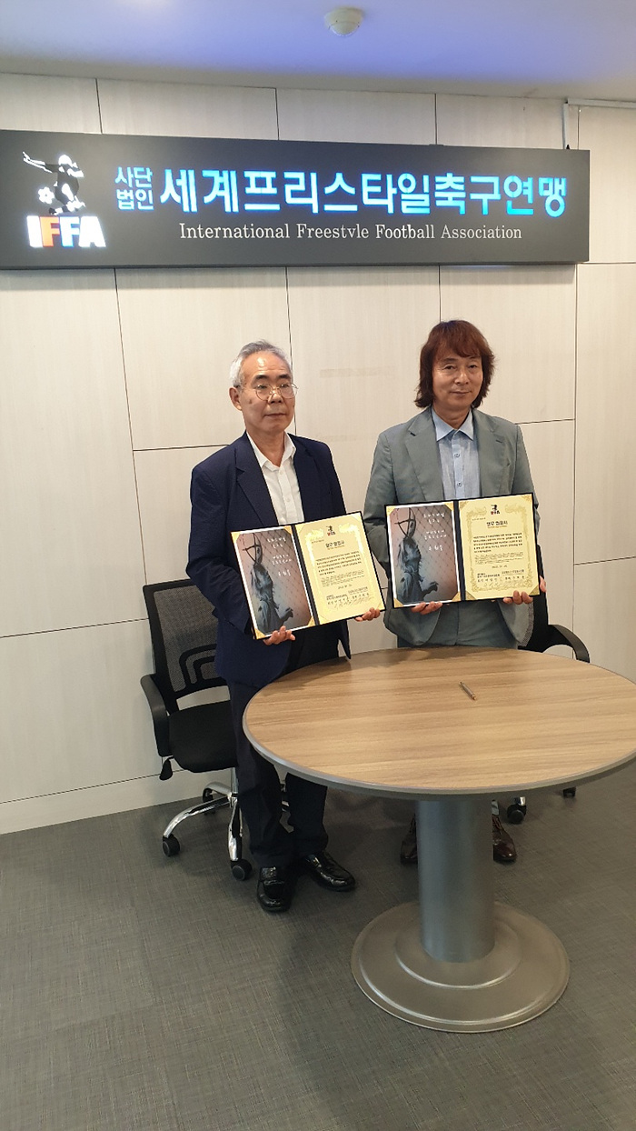 금번 (사)세계프리스타일축구연맹과 업무협약을 체결하였습니다.